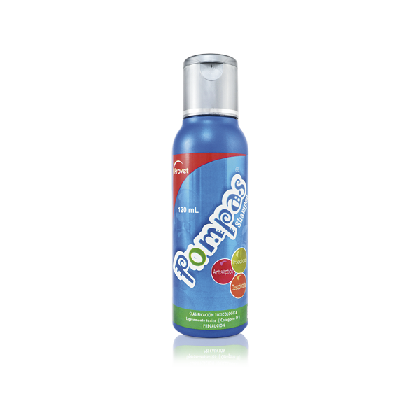 El producto se debe dejar actuar por lo menos durante 5 minutos y luego se enjuaga el animal con abundante agua y se procede a secar. Pompas®Shampoo se puede usar cada 30 días o cuando exista presencia de ectoparásitos o cuando se requiera higienizar la mascota.